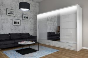 Szafa Sycylia 250 cm LED – Biały Połysk / Lustro – Arkos