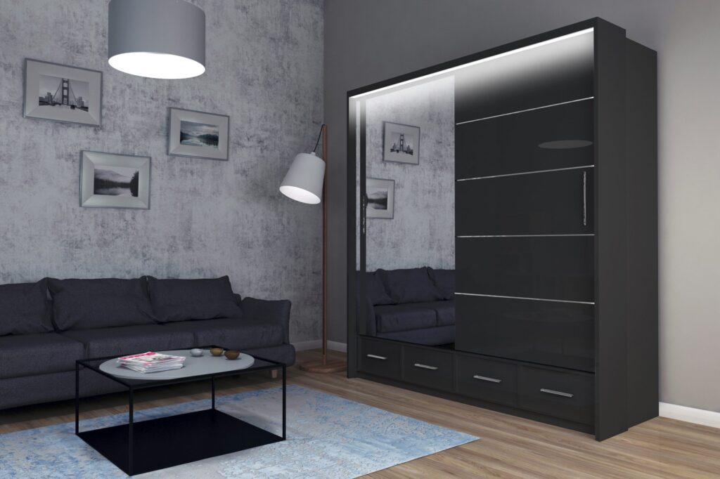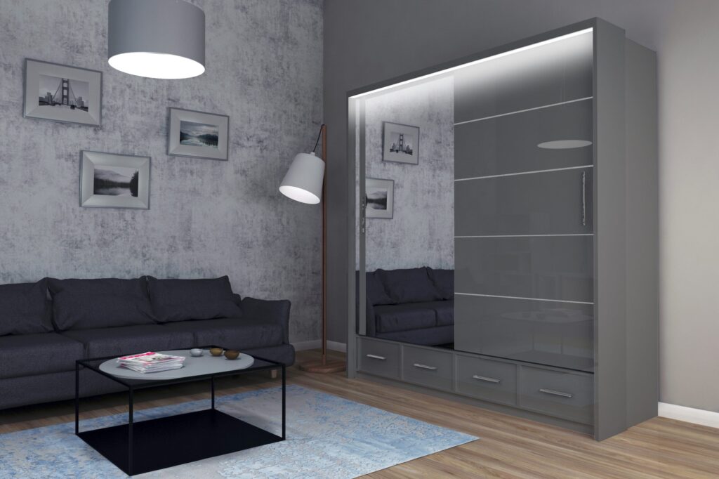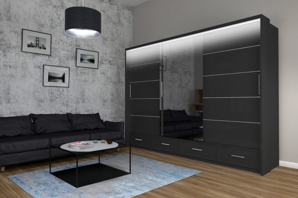 Szafy Sycylia 250 cm LED w kolorze biały połysk / lustro – widocznej na zdjęciu poniżej