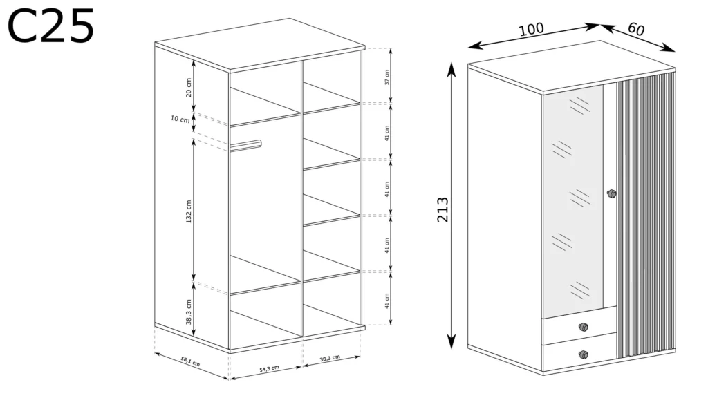 Szafa z lustrem Cali C-25 w kolorze artisan