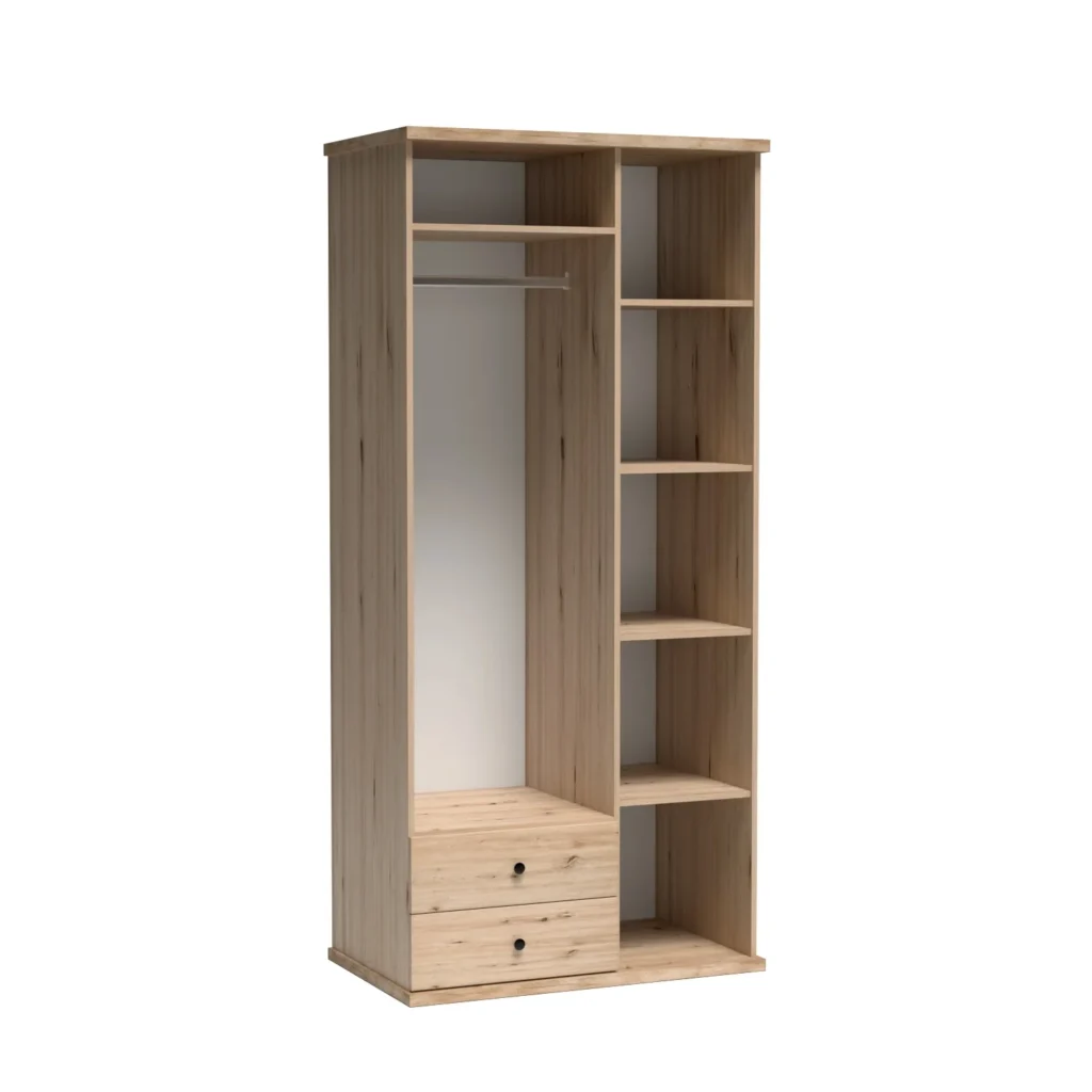 Jeśli szukacie Państwo nowoczesnej szafy łączącej funkcjonalność wraz z unikatowym, nieco loftowym wyglądem to mamy coś właśnie dla Was. Harmonia i balans osiągnięte zostały poprzez zestawienie naturalnego odcienia Artisan wraz z czarnymi dodatkami oraz wstawką lameli. Duże lustro umieszczone na froncie optycznie powiększa przestrzeń. Wszystkie bryły z kolekcji Cali łączy najwyższa jakość materiałów oraz solidność wykonania.