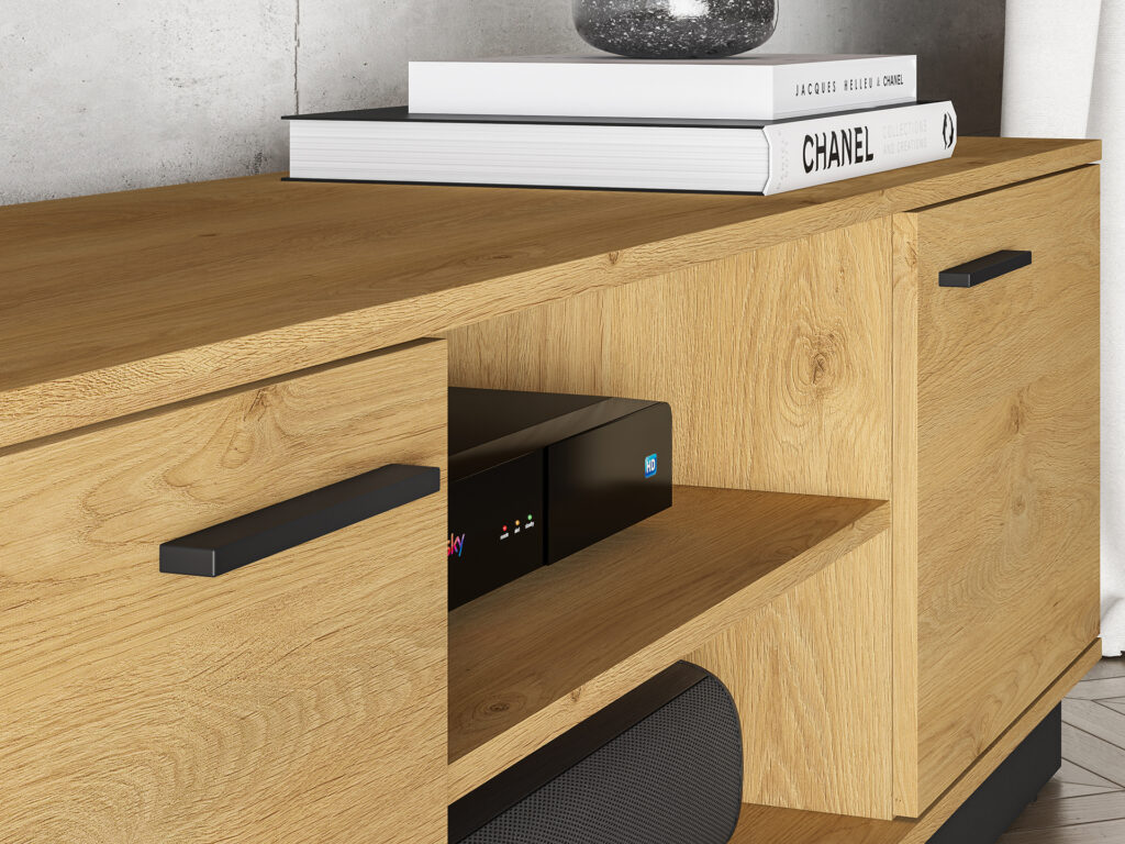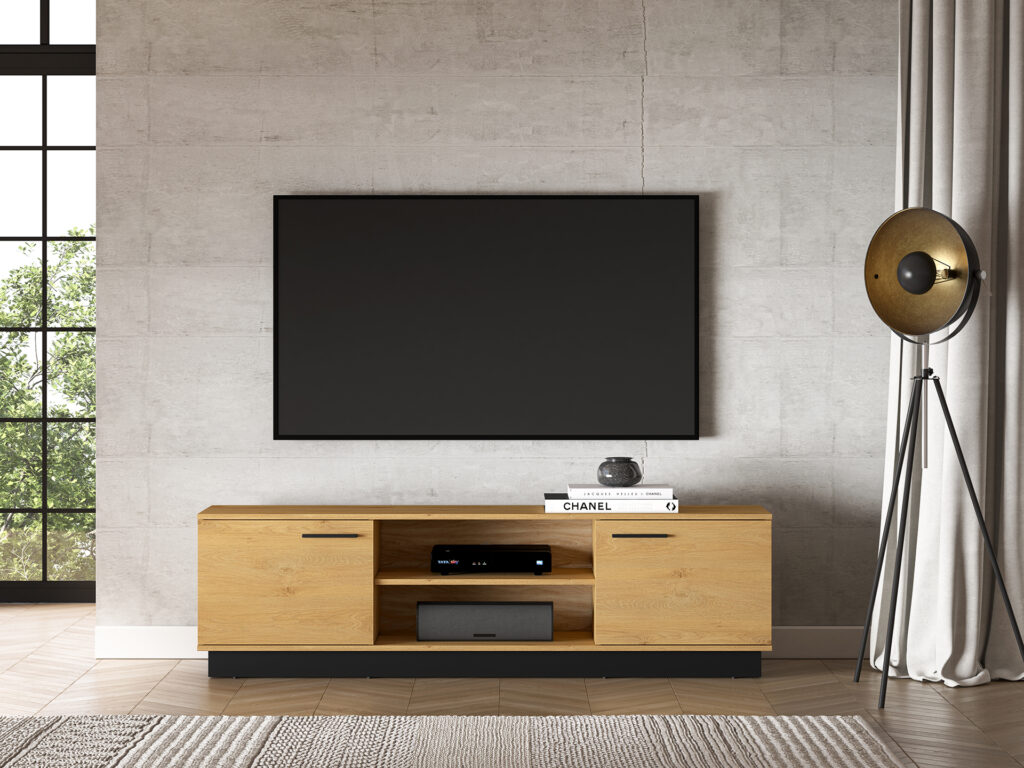 Szafka RTV Modesto 06 w kolorze dąb stylowy / czarny / dąb stylowy.