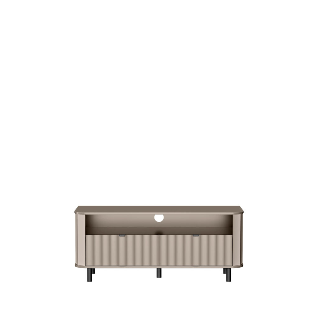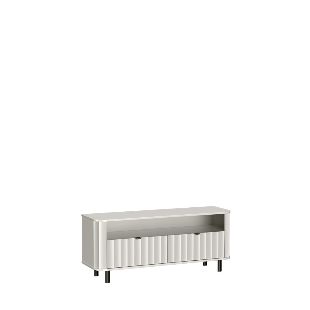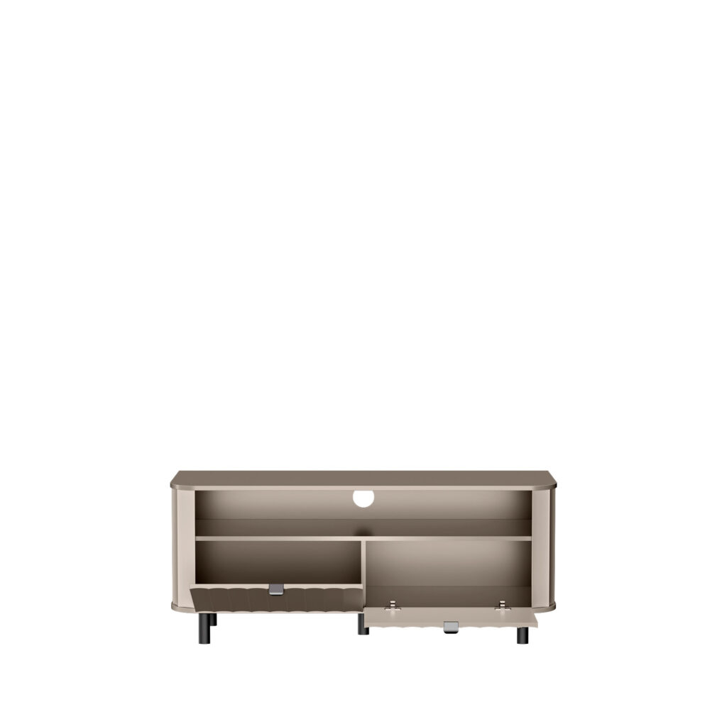 Szafka RTV NOVADO – 6 to idealne rozwiązanie do mniejszych przestrzeni. Zgrabna, funkcjonalna, z miejscem na dekoder i schowkami za klapami. Zaokrąglony blat, metalowe nogi i dwa modne kolory sprawiają, że świetnie wpisuje się w nowoczesne wnętrza.