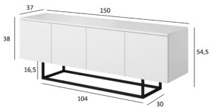 Cena dotyczy szafki RTV 150 4D Asgard w kolorze białym ze stelażem czarnym.