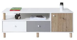 Szafka stolik RTV Faro FR8 – Biały Lux / Dąb Artisan / Szary – Meblar