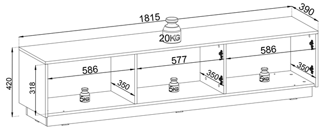 – szerokość 181,5 cm / wysokość 42 cm / głębokość 39 cm