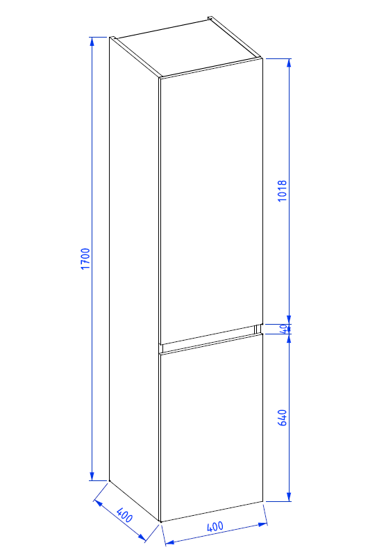 Półki – trzy półki, jedna przegroda; opcja zastąpienia półki w dolnej części szafki koszem na bieliznę i wówczas zamiany mocowania frontu na klapę