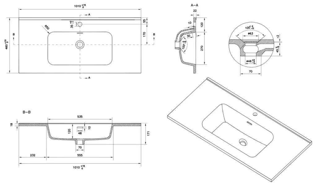 Umywalki ceramicznej wpuszczanej widocznej na zdjęciach.