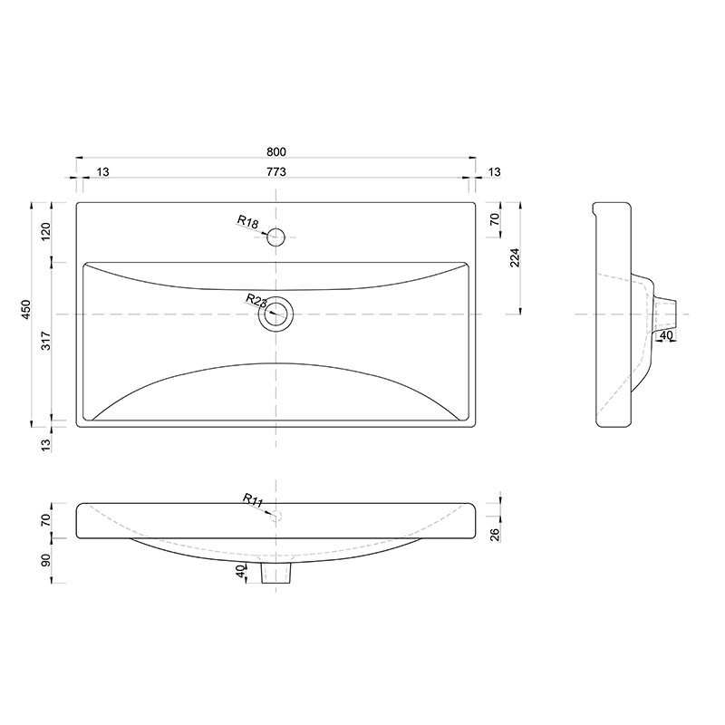 Umywalka meblowa Verso 80 – 1044
