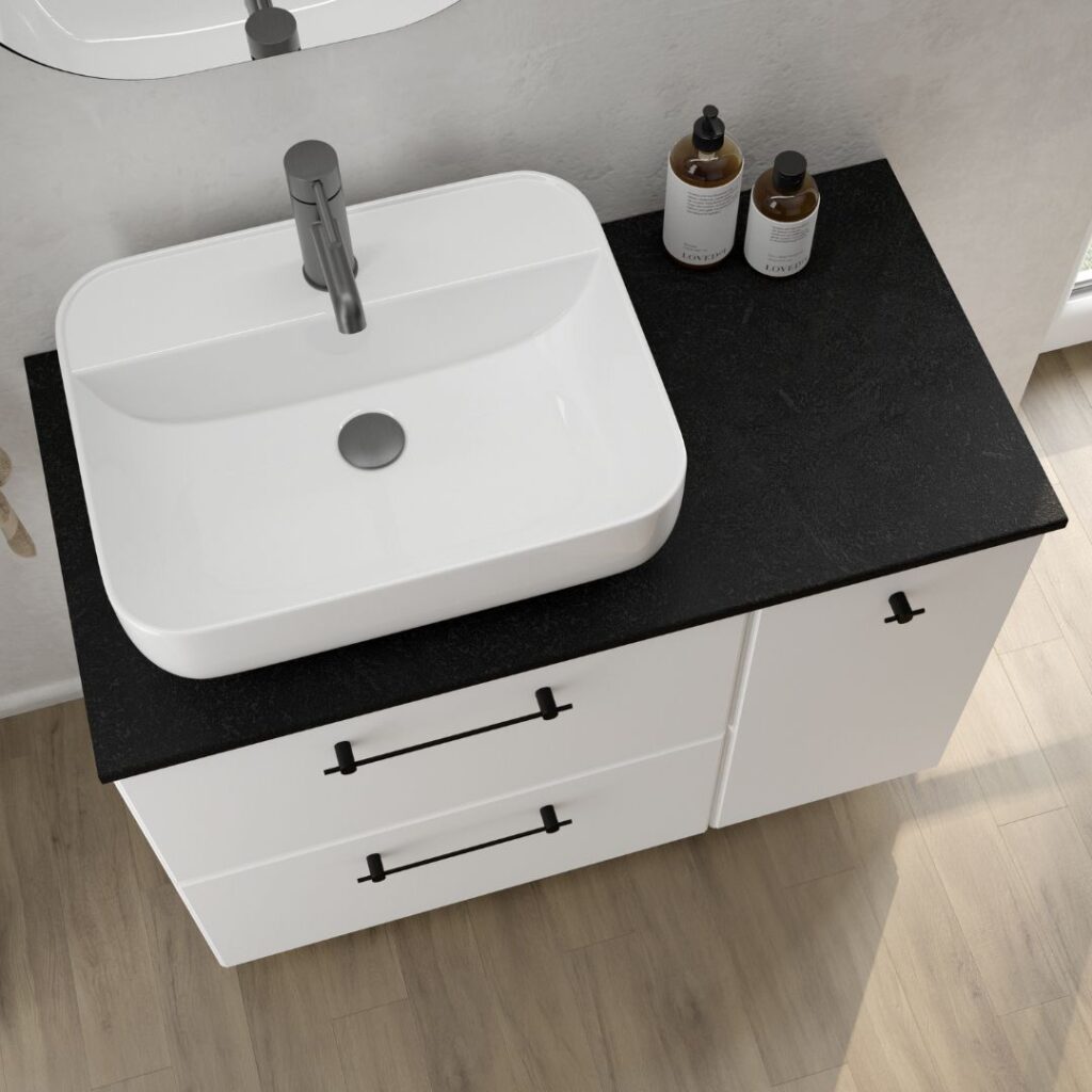Aby stworzyć udaną aranżację połącz umywalkę Avena z szafką i blatem (konglomeratowym, postformingowym lub laminowanym). Jeśli wybierzesz dłuższy blat, możesz wykorzystać go do ustawienia kosmetyków, a nawet dekoracji.