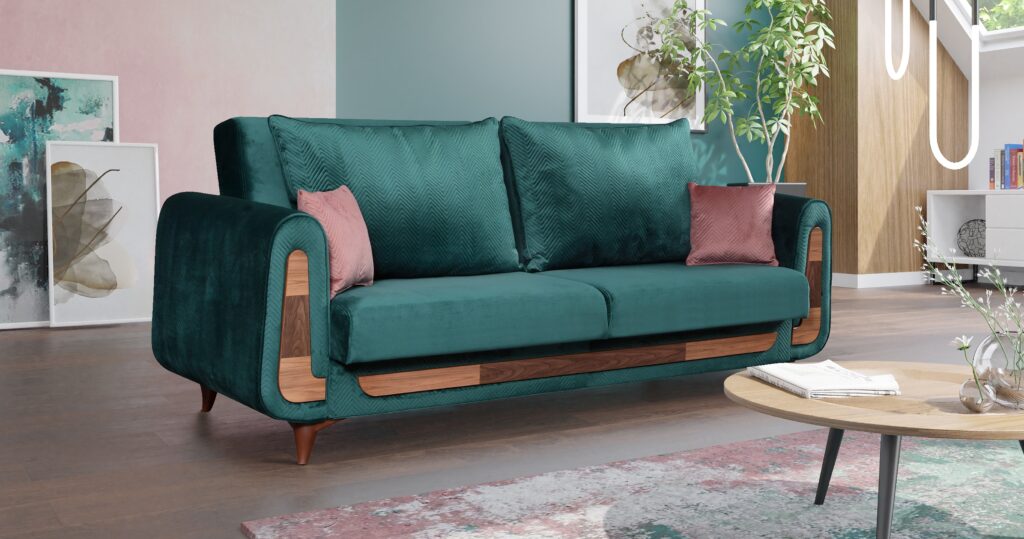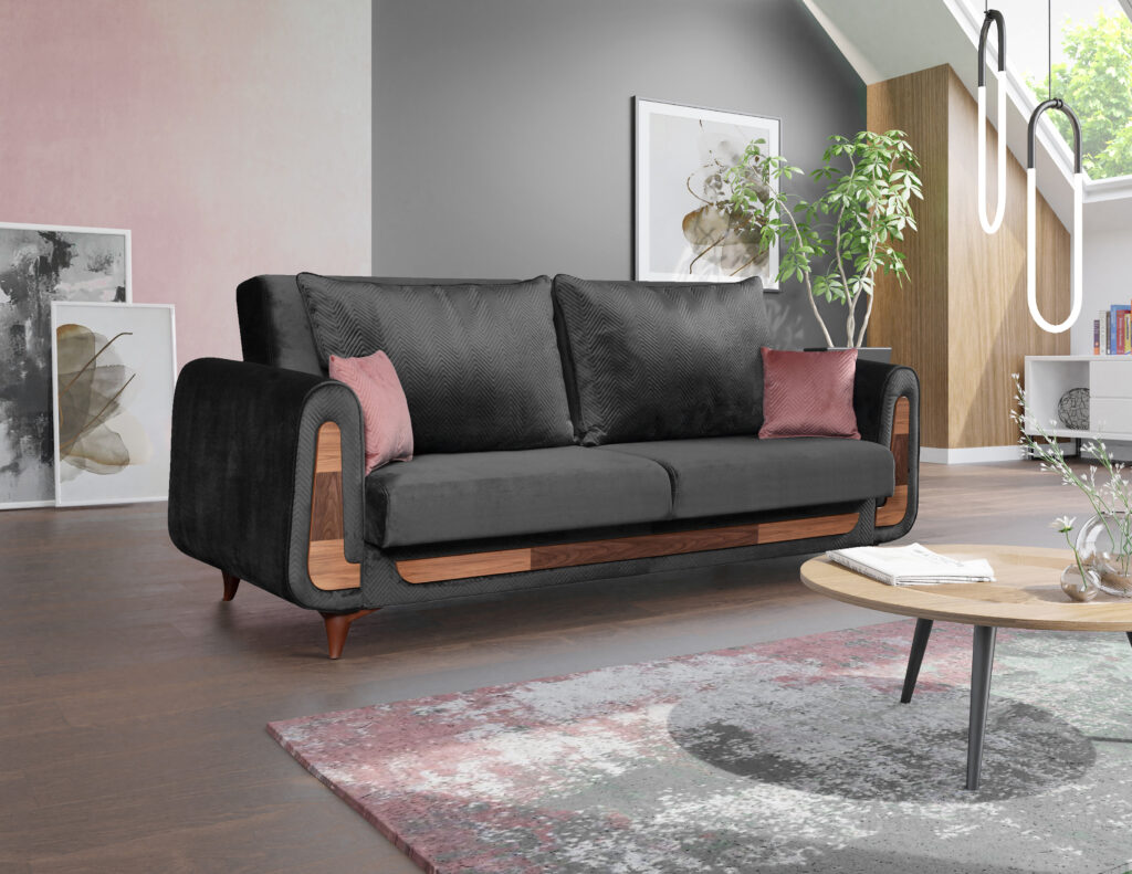 Kształty wersalki nadają jej przytulnego charakteru jednocześnie wprowadzając do salonu harmonię i spokój.