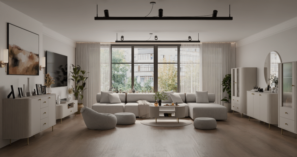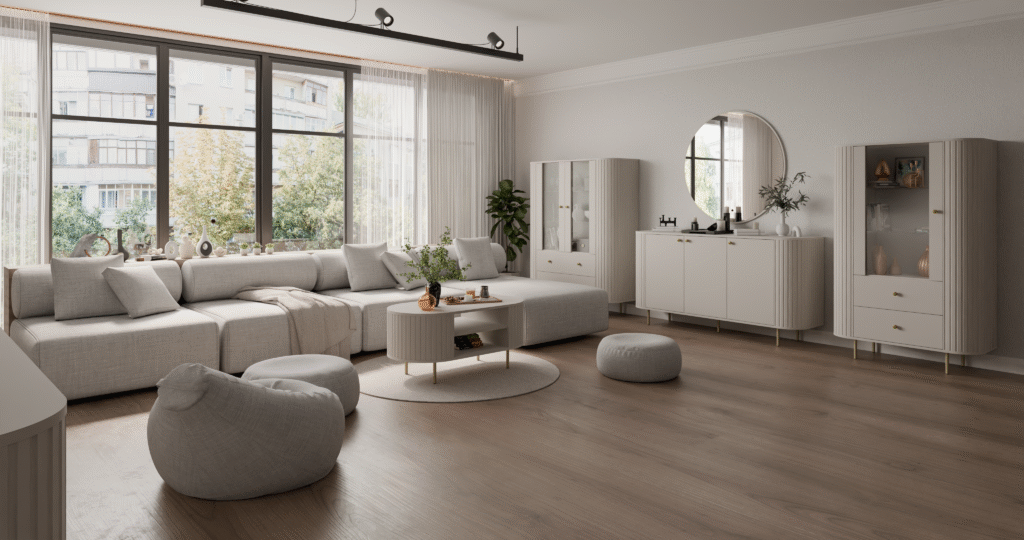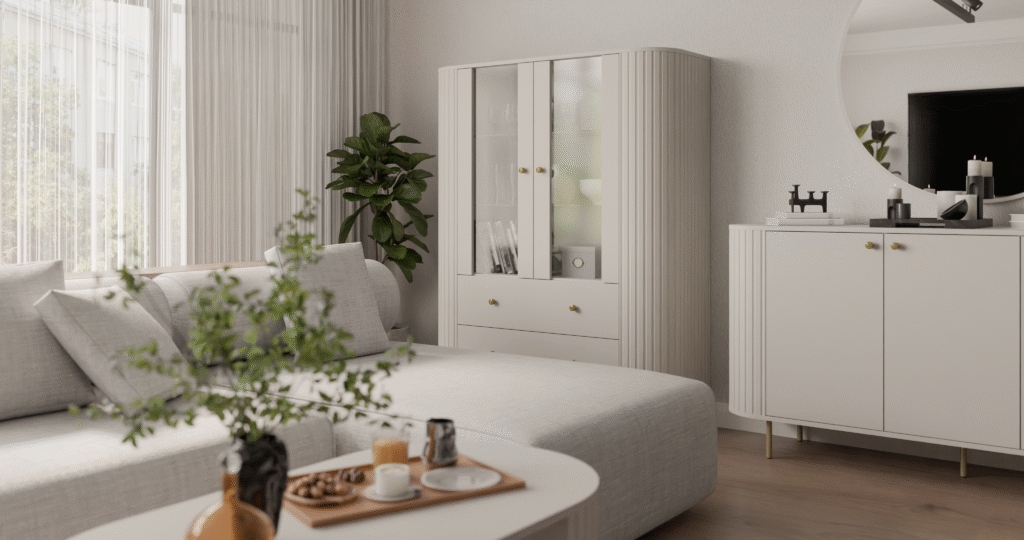 Kolekcja została zaprojektowana tak,aby każdy element – od witryn i komód, po ławy i szafki RTV – mógł być wykorzystany indywidualnie, a jednocześnie tworzyć spójną i harmonijną całość.
