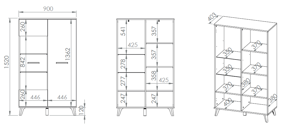 Połyskująca biel dodaje prostym bryłom oryginalnego charakteru, a metalizujące uchwyty podkreślają ich współczesny styl. Subtelna gra odbić na frontach i wieńcach górnych wygląda efektownie oraz powiększa optycznie pokój. Modne i praktyczne nóżki sprawiają, że meble prezentują się lekko, a wnętrze sprawia wrażenie bardziej przestrzennego.
