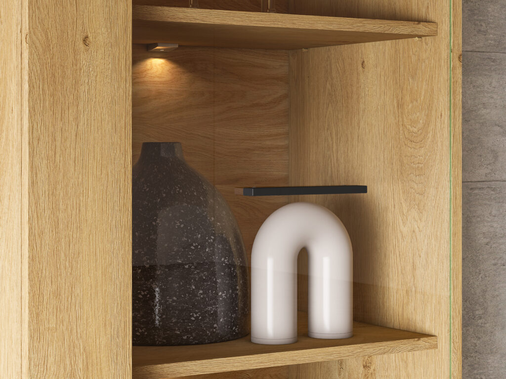 Witryny szklanej 02 w kolorze dąb stylowy / czarny / dąb stylowy.