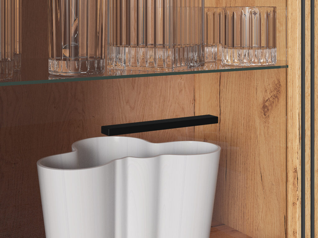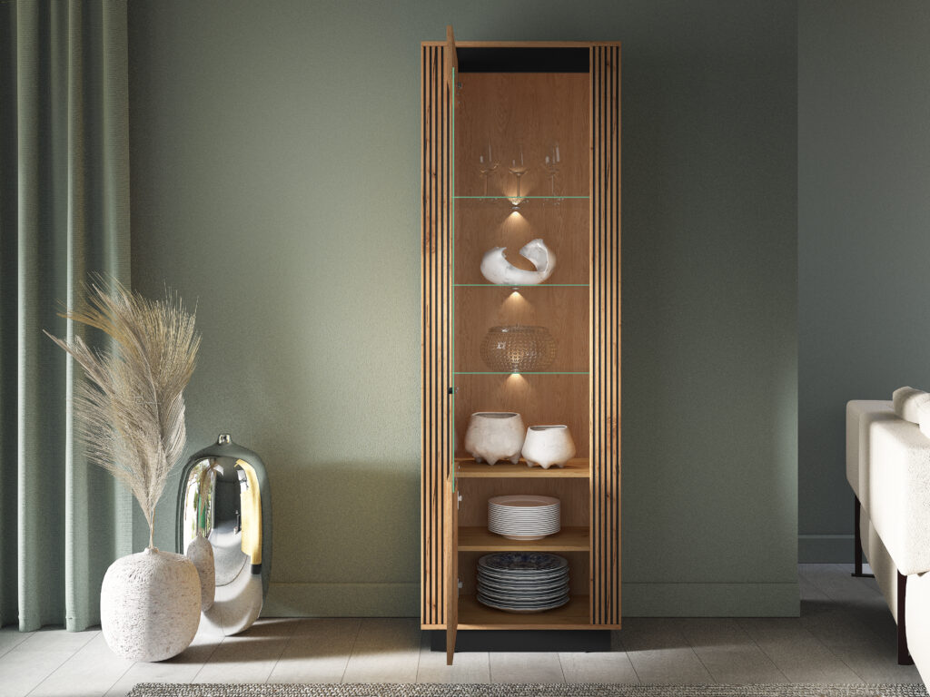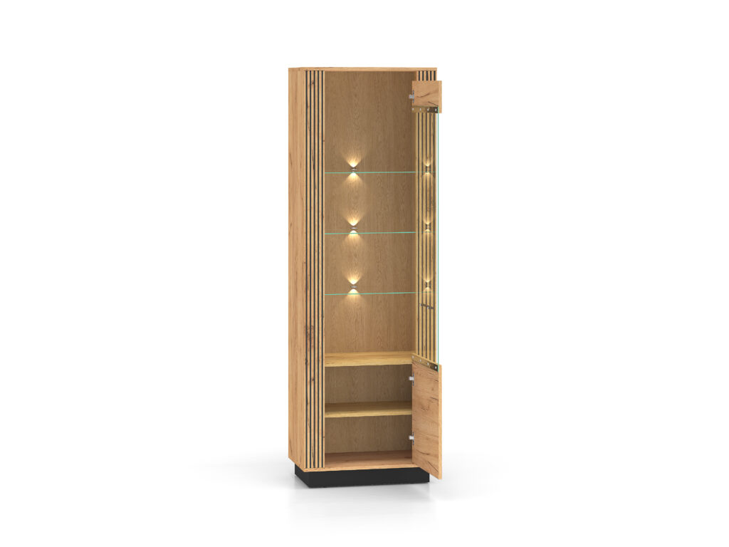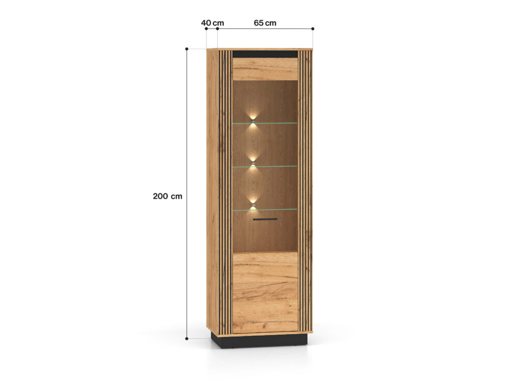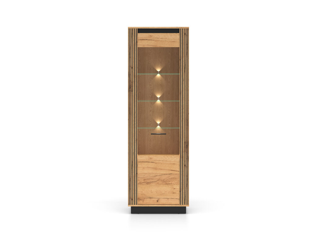 Witryny 04 w kolorze dąb craft złoty / czarny. Oświetlenie jako opcja dodatkowa.