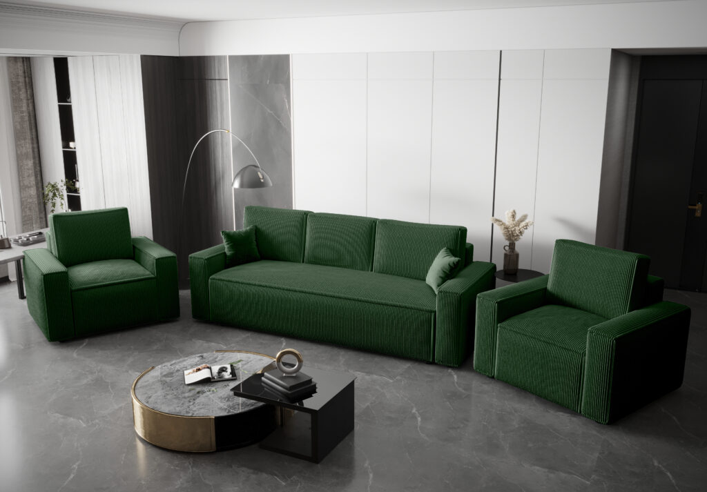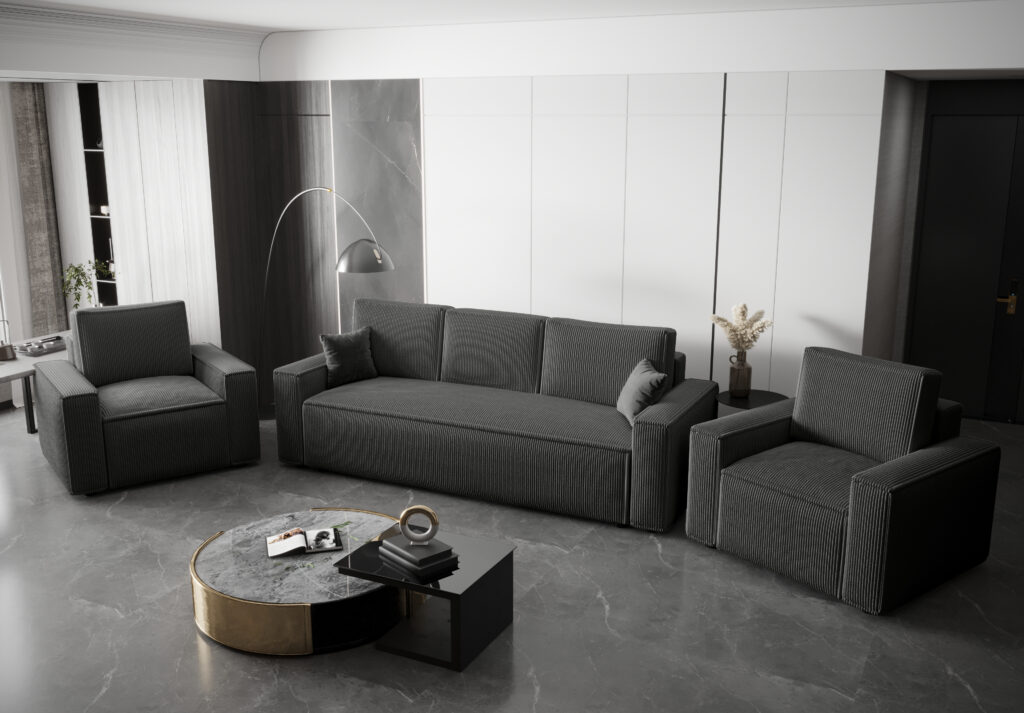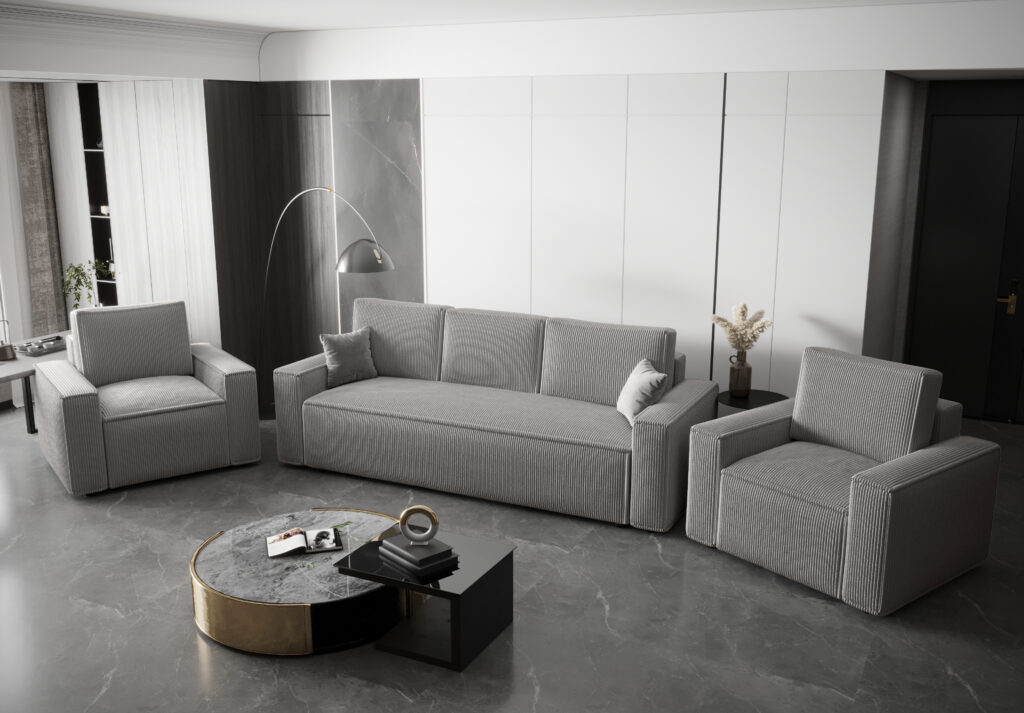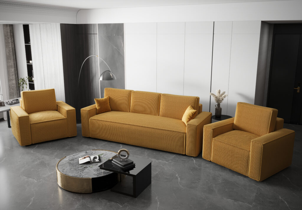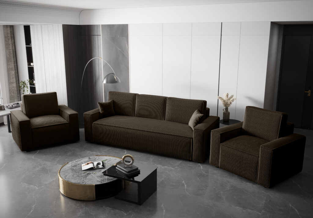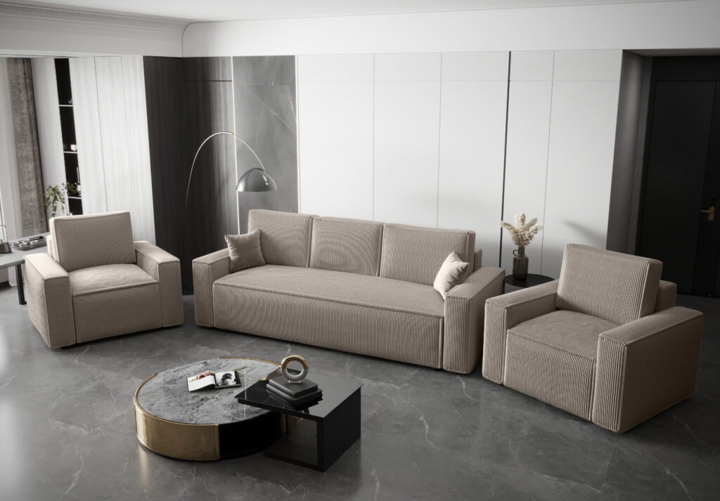 Zestaw Ambro Sofa + 2 x Fotel – Uniwersalny Miękki Sztruks