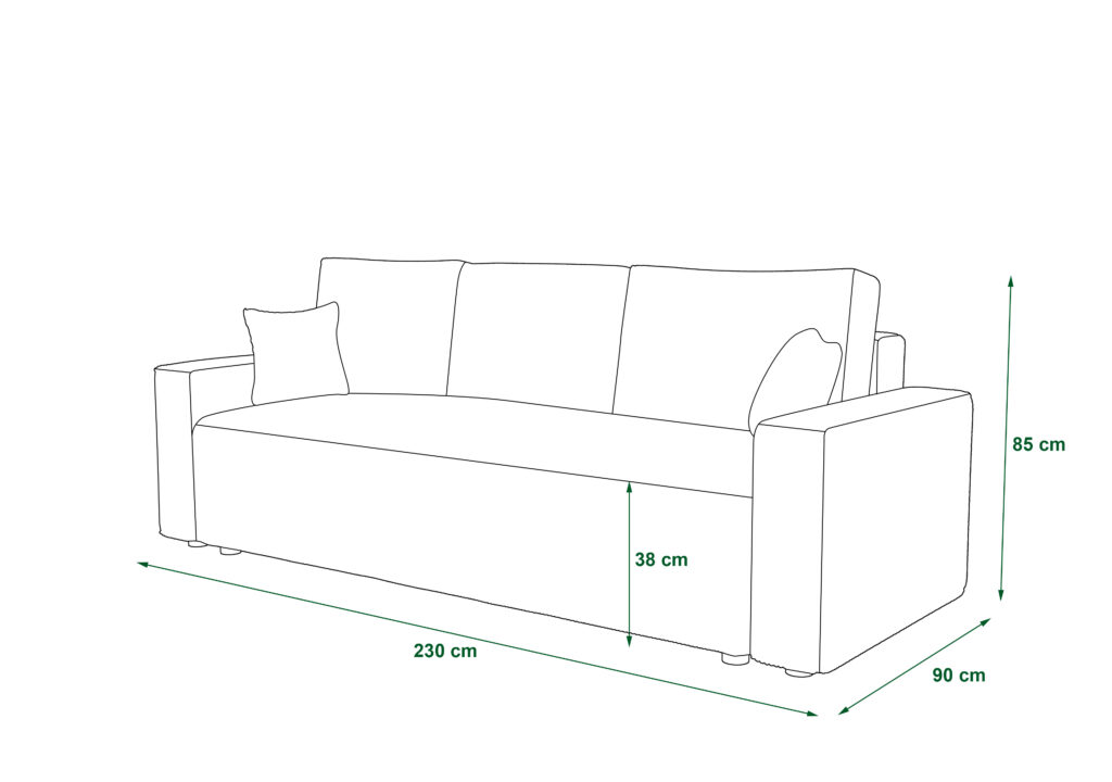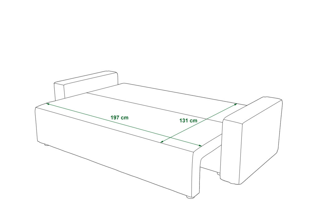 Zestaw Ambro do nowoczesnego salonu z funkcją spania oraz pojemnikiem na pościel wykonana na sprężynie falistej.