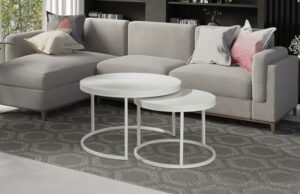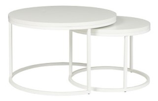 Cena dotyczy zestawu dwóch stolików kawowych Koło w kolorze białym widocznych na zdjęciu poniżej.