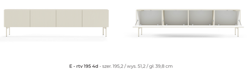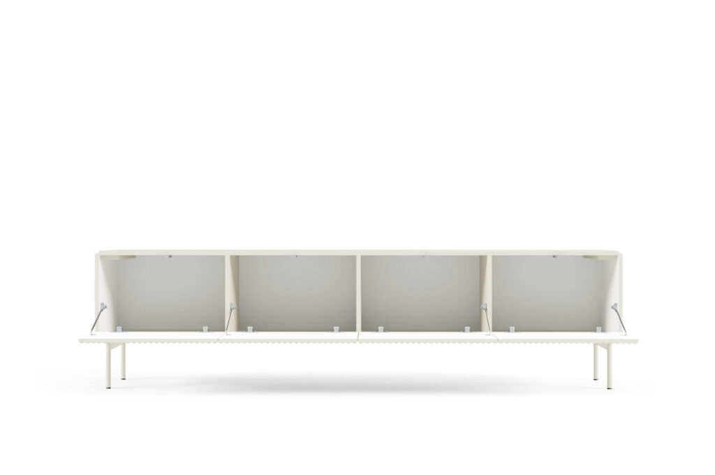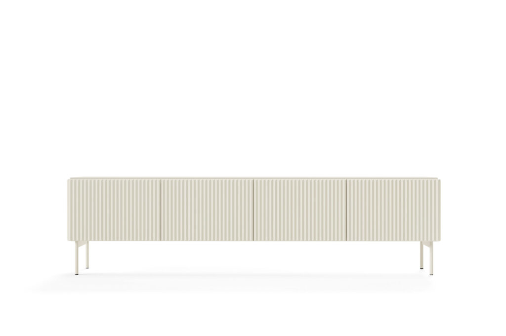 Przekształć swoje mieszkanie w oazę elegancji, świeżości i harmonii z kolekcją Muti. Delikatny, kaszmirowy kolor, prostota brył oraz bezuchwytowe fronty z systemem push-to-open doskonale współgrają z subtelnymi, ryflowanymi frontami i bokami. Te nietuzinkowe zdobienia odmienią wnętrze salonu, wprowadzając efektowny design, odpowiadający najnowszym trendom. Doskonały dodatek stanowią metalowe nogi w kolorze kaszmirowym. Te meble to połączenie nowoczesności, lekkości i funkcjonalności.