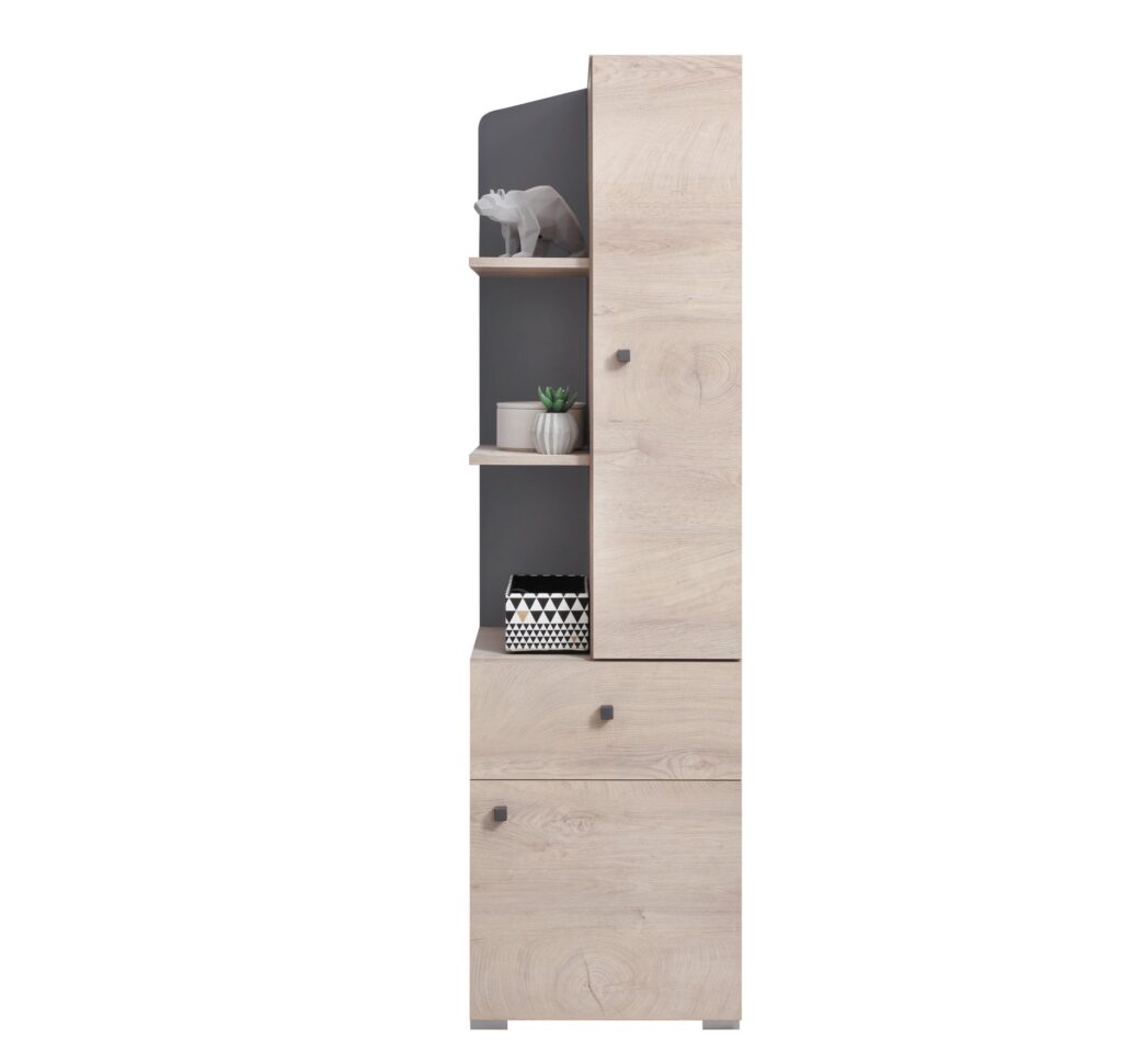 Cena dotyczy zestawu mebli młodzieżowych Delta B w kolorze dąb / antracyt widocznego na zdjęciu poniżej. W cenę zestawu nie został wliczony materac.