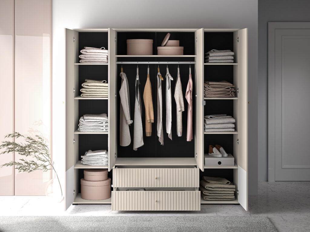 Zestawu mebli Sophie : Szafy 23 + Szafki na buty 14 + Lustra 21 w kolorze kaszmir / MDF kaszmir.