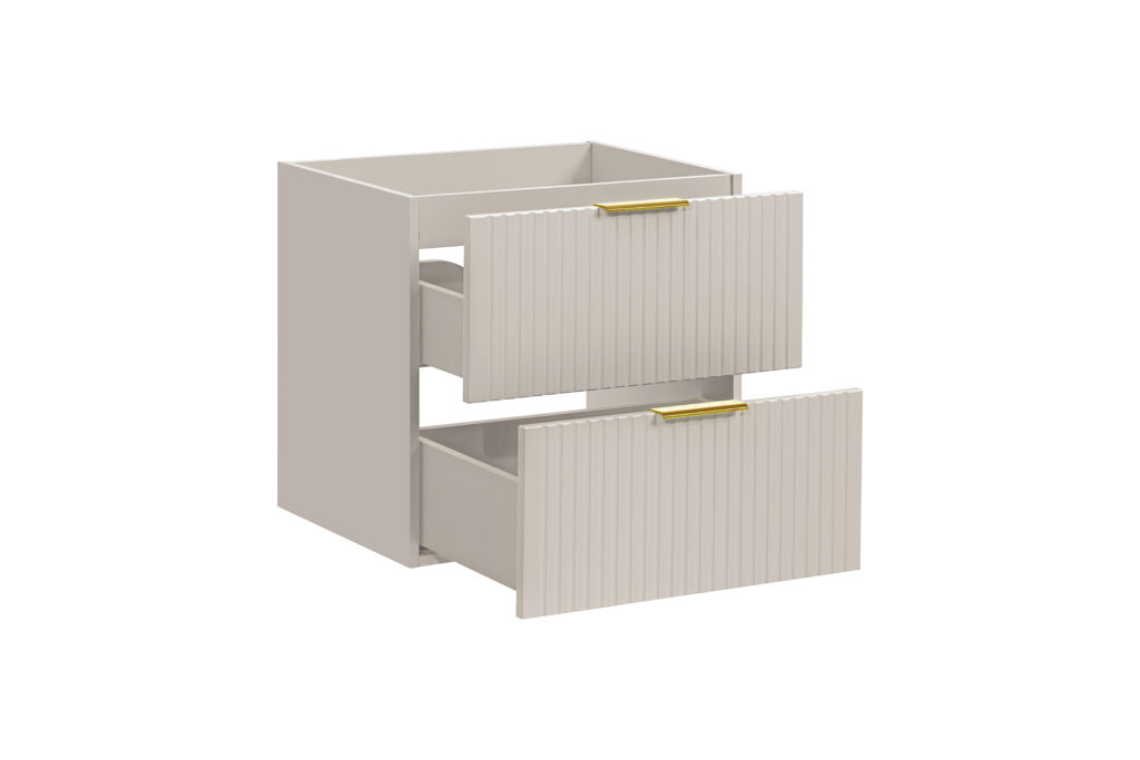Kolekcja mebli łazienkowych Adel Cashmere to odsłona naszej najpopularniejszej serii, która łączy elegancję i funkcjonalność. Meble wykonane z płyty MDF i płyty laminowanej zapewniają trwałość i odporność na wilgoć, co czyni je idealnym wyborem do łazienek. Pionowe, ryflowane fronty nadają meblom unikalny charakter i optycznie powiększają przestrzeń łazienki, a kaszmirowy kolor nadaje wnętrzu kontrastowego designu i nowoczesnego charakteru, doskonale komponując się z różnorodnymi aranżacjami wnętrz. Niezależnie od tego, czy wnętrze jest nowoczesne, czy klasyczne, meble z tej kolekcji staną się idealnym dopełnieniem aranżacji, wnosząc elegancję i praktyczność. W skład naszej kolekcji wchodzą meble, umożliwiające swobodne komponowanie i personalizację przestrzeni łazienkowej według indywidualnych potrzeb. W ofercie znajdują się szafki pod umywalkę z możliwością montażu na ścianie, o szerokościach 40 cm, 60 cm i 80 cm, słupek wysoki oraz blaty o wielu wymiarach. Do kolekcji rekomendujemy różnorodne umywalki nablatowe i meblowe, lustra oraz inne akcesoria, które pozwolą Ci stworzyć kompleksową i stylową aranżację łazienki.