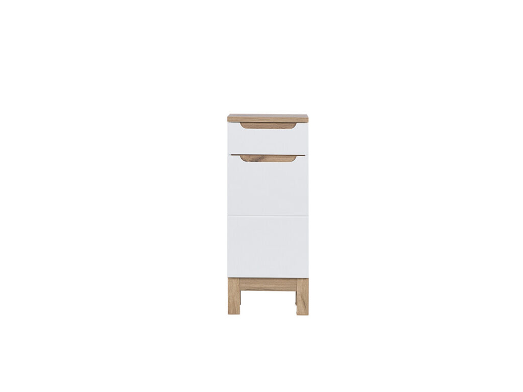 Bali to kolekcja, która imponuje wzornictwem – połączenie solidnych korpusów z delikatną bielą frontów oraz drewnianymi detalami sprawia, że meble stają się centralnym elementem wystroju łazienki. W kolekcji znajduje się wiele szafek o różnych rozmiarach i zastosowaniu, dzięki czemu każdemu uda się skomponować łazienkę dostosowaną do indywidualnych potrzeb i wizji. Do produkcji mebli wykorzystano wysokiej jakości płyty meblowe laminowane, korpus 16mm, fronty z płyty MDF, lustro na płycie laminowanej oraz ciche domyki w drzwiach i szufladach. Rodzaj mocowania : szafki stojące oraz podwieszane. Kierunek frontów prawo i lewo. Producent zamiast tradycyjnych uchwytów zastosował modne frezowania we frontach.