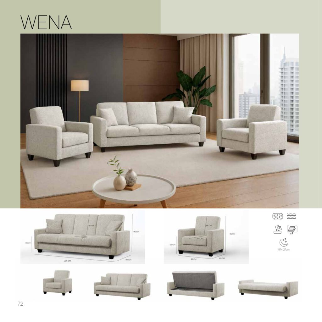 Przedmiotem oferty jest wygodny,nowoczesny zestaw Wena do salonu z funkcją spania oraz pojemnikiem na pościel wykonana na sprężynie falistej oraz piance wysokoelastycznej.